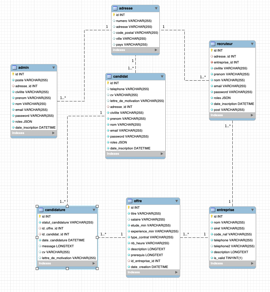 J'ai développé un site web utilisant le framework Symfony pour faciliter la mise en relation entre les entreprises en quête de talents et les candidats cherchant des opportunités professionnelles. Ce projet permet aux entreprises de publier des offres d'emploi et de gérer les candidatures reçues, tandis que les candidats peuvent postuler aux offres et gérer leur profil.